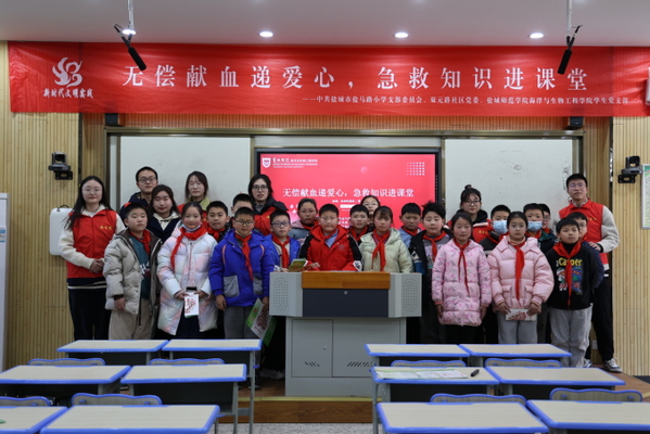 32日,williamhill英国学生党支部联合双元路社区党委走进盐马路小学,开展了无偿献血递爱心,急救知识进课堂主题爱心课堂活动。盐马路小学副校长凌万春、双元路社区网格员、海生院学生党支部党员代表参加了此次活动。