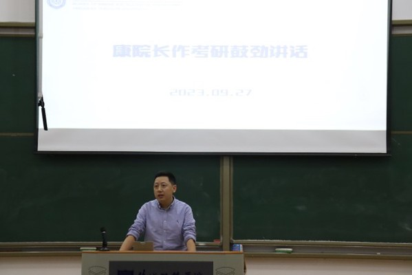 康贻军作考研鼓劲讲话,他表示鼓劲大会亦是誓师大会,并针对同学们考研备考提出“三个清楚,两种精神”的建议。“三个清楚”即为:看清楚、想清楚、说清楚。看清眼前形势,未来发展趋势,研究当下考研最新政策;想清楚今后的价值地位、职业定位,明确自身职业去向;说清楚知识点与行业、研究之间的关系,杜绝低效率学习。“两种精神”即是:斗争精神、螺丝钉精神。考研路是一场战役,要不断与自己作斗争,只有战胜自身,不言放弃,为一个坚定不移的目标努力而坚持,才能取得最终的胜利。