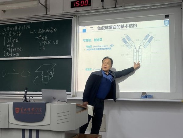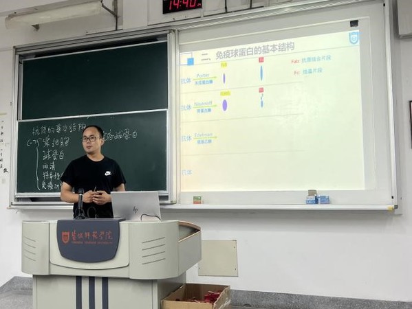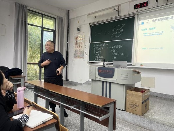 首先,由徐梦老师给全体教师对《免疫学》课程中《抗体的结构》进行授课,徐老师通过2023年诺贝尔生理与医学奖的成果引入教学内容,从抗体的概念、结构解析以及存在形式等方面运用精彩的动画和最新的研究资料进行讲解。接着,校教学督导员吴生才教授对徐老师的课堂教学从导入与结课、授课语言、PPT展现和板书等八个方面进行了点评和指导,戴振凯、夏文龙等教师也就教学设计中如何将课本上复杂的问题简单化、如何提高课堂的生动性发表了各自的观点和建议。