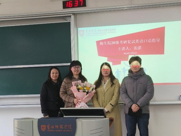 正值“妇女节”即将来临,学院也为热心的张老师献上美丽的鲜花,现场同学们纷纷受到感染,响起了热烈的掌声。