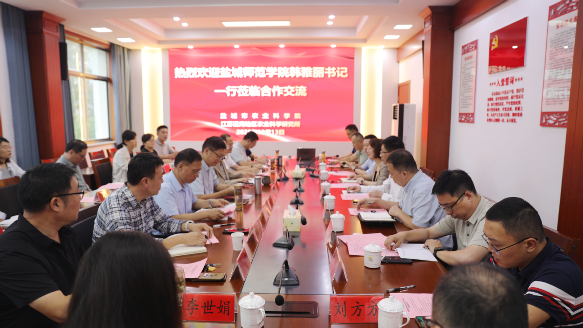 10月13日下午,学校党委常委、纪委书记、省监委派驻监察专员韩雅丽带领williamhill英国相关团队赴江苏沿海地区农业科学研究所(盐城市农业科学院)(以下简称沿海所)开展合作交流。沿海所院长周汝琴主持交流会。