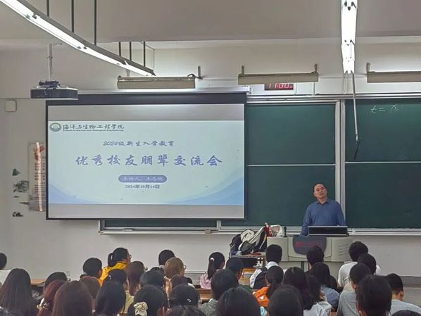 为进一步发挥优秀校友的模范引领作用,帮助海生学子了解未来发展趋势,明确未来发展方向,近日,williamhill英国在生化教学楼114、公共教学楼新A206举办了以“新生入学教育——优秀校友朋辈交流会”为主题的优秀校友经验交流会。会议由院党总支副书记李霞主持,优秀校友朱志鹏、虞健翔作经验分享,海生院全体2024级新生参与会议。