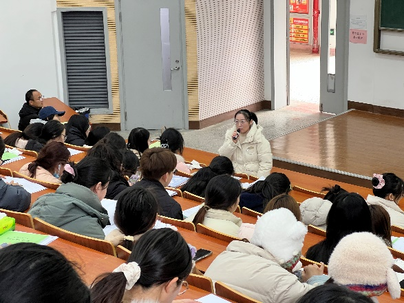 在专题讲座环节,陈盈盈以“实习前准备、实习中实践、实习后反思”为主线,通过典型教学案例与班级管理情境,分享了备课策略、课堂互动技巧及突发情况应对经验。她表示:“实习是师范生第一次以教师身份走进校园,既要学会‘站稳讲台’,也要善于‘看见学生’。”现场互动积极,学生围绕课堂秩序管理、学情差异应对等踊跃提问,陈盈盈逐一做针对性解答。