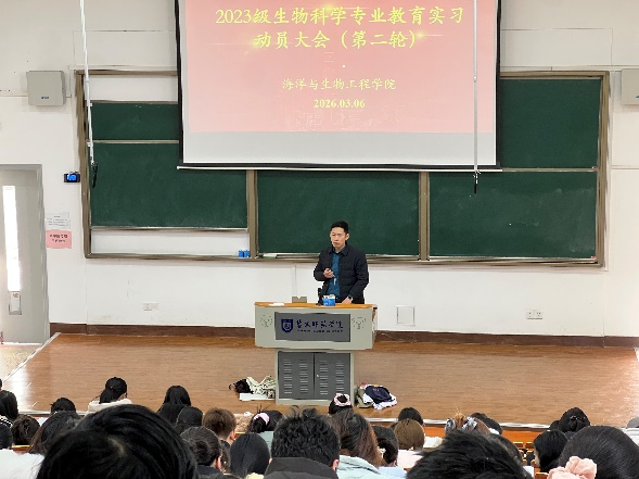 3月6日下午,williamhill英国在城资楼A200教室举行2023级生物科学(师范类)专业教育实习动员大会。会议旨在引导学生明晰实习目标、强化实践能力,为即将开始的教育实习做好准备。江苏省盐城中学教师陈盈盈受邀作专题辅导。学院副院长李祥、生物科学系主任栾海业、副主任徐梦、学工办副主任陈晨及全体学生参会。